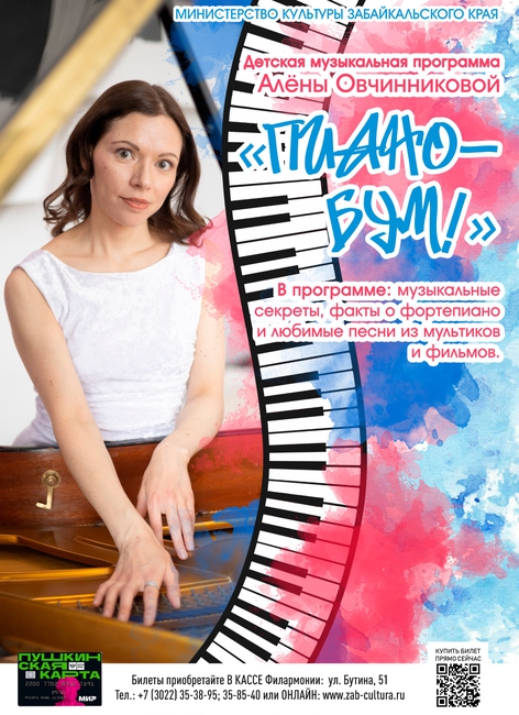 Эта увлекательная программа станет для юных зрителей настоящим путешествием в мир музыки! Вместе с артистами Забайкальской филармонии Аленой Овчинниковой (фортепиано) и ведущим Степаном Антоновым дети познакомятся с фортепиано. Они узнают, почему у него 88 клавиш, чем рояль отличается от пианино и какие волшебные секреты скрываются внутри этого сложного механизма.